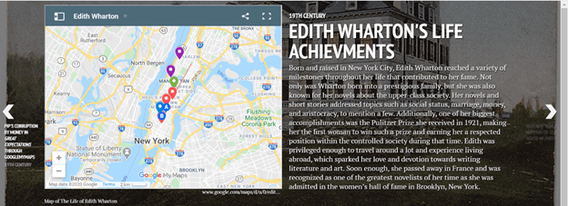 Furthermore, in Wharton’s work, one can observe a certain vagueness when it comes to geographical descriptions of her character’s locations and origins. Thus, showing that the author adequately described places she knew from experience. However, a naked eye could have not noticed this matter, but it was brought to our attention after mapping her life achievements and novel.